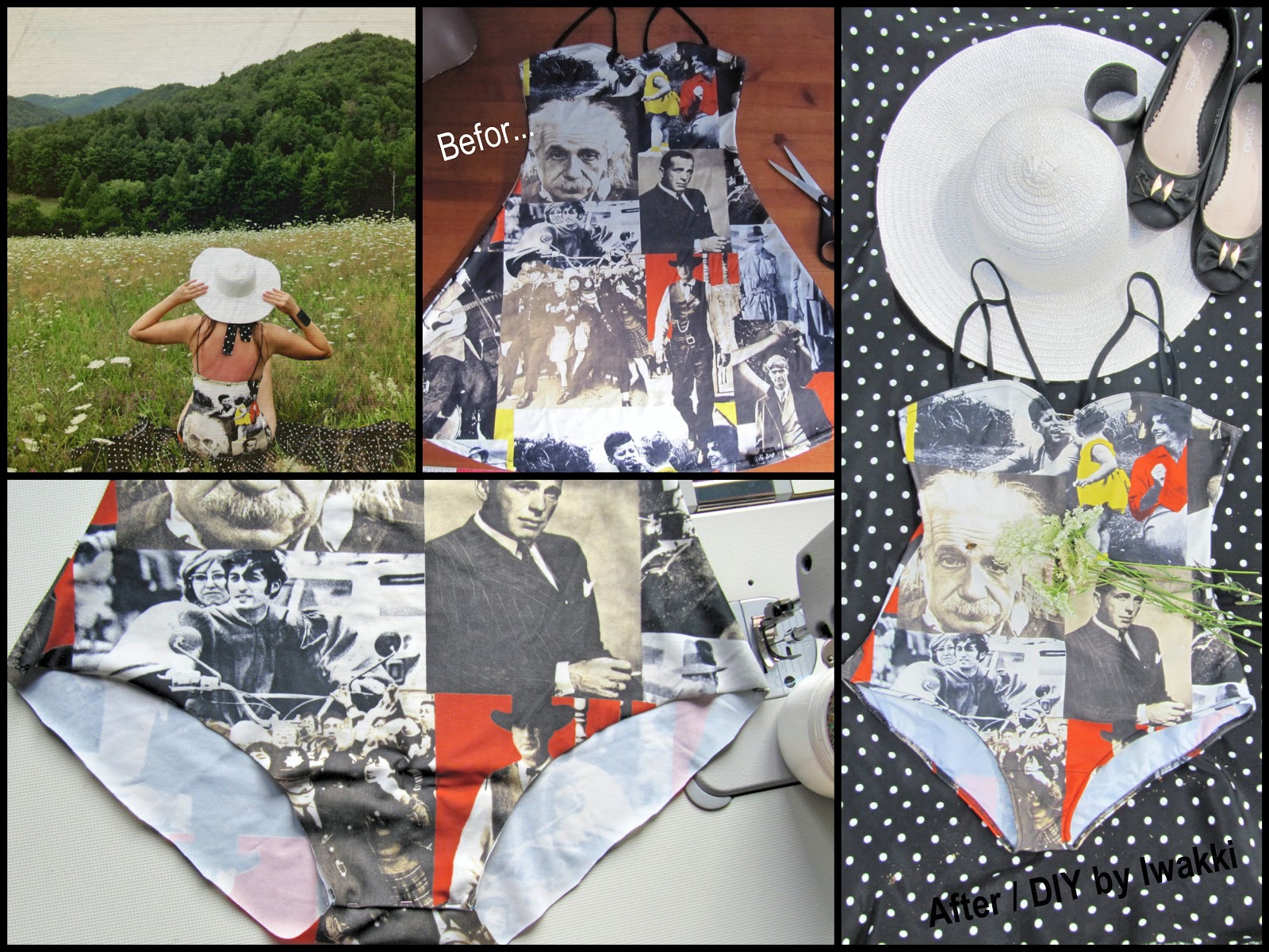 Strój kąpielowy jednoczęściowy wykonałam z sukienki.